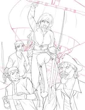 インフルにかかった後も体調回復せず、〆切りに追われてモーたいへん。現在進行形で遅れを取り戻すため頑張っているそうです、仕事の。グレンツの扉絵も忘れてないよ、でも時間取れないよー、すまんのー、ということで、ペン入れした線画を送ってきてくださいましたよ。これに色が入るのは……秋、かなぁ。