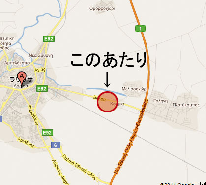 ラリサ空港の斜め下、適当な位置に適当な大きさの工場らしきものがあったので、適当に選びました。